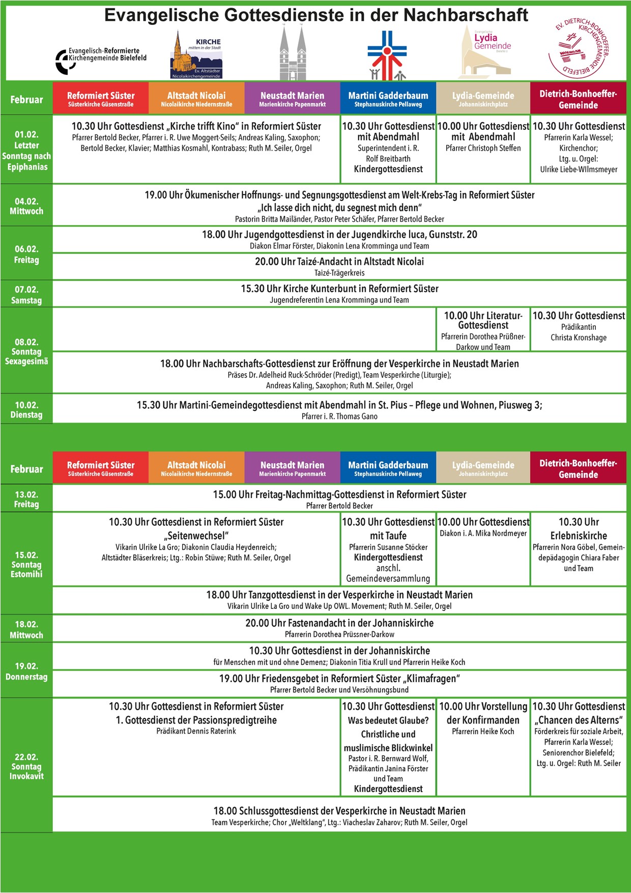 Gottesdienste der Region im Februar 2026