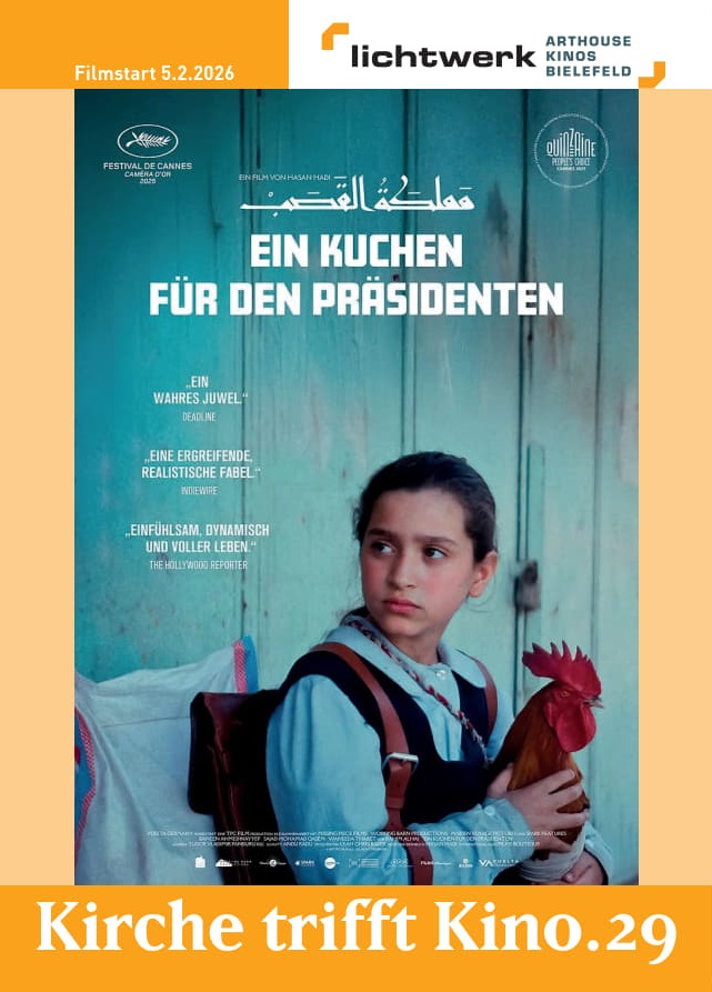Der Film »Ein Kuchen für den Präsidenten« läuft ab 6.2.2026 im Kino Lichtwerk, Ravensberger Park 7, 33607 Bielefeld.