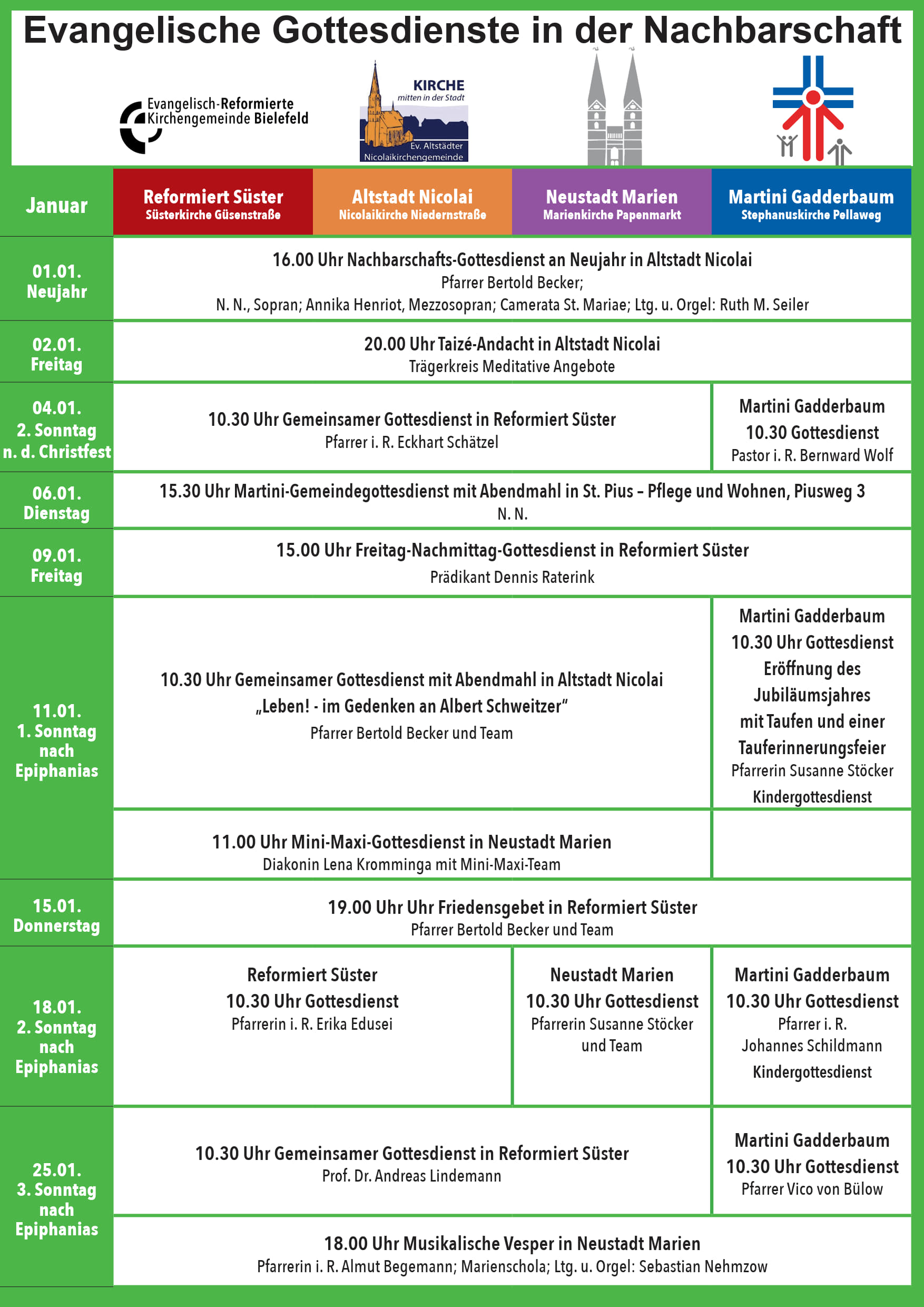 Gottesdienste Altstadt, Neustadt, Martini und Reformiert im Januar 2026